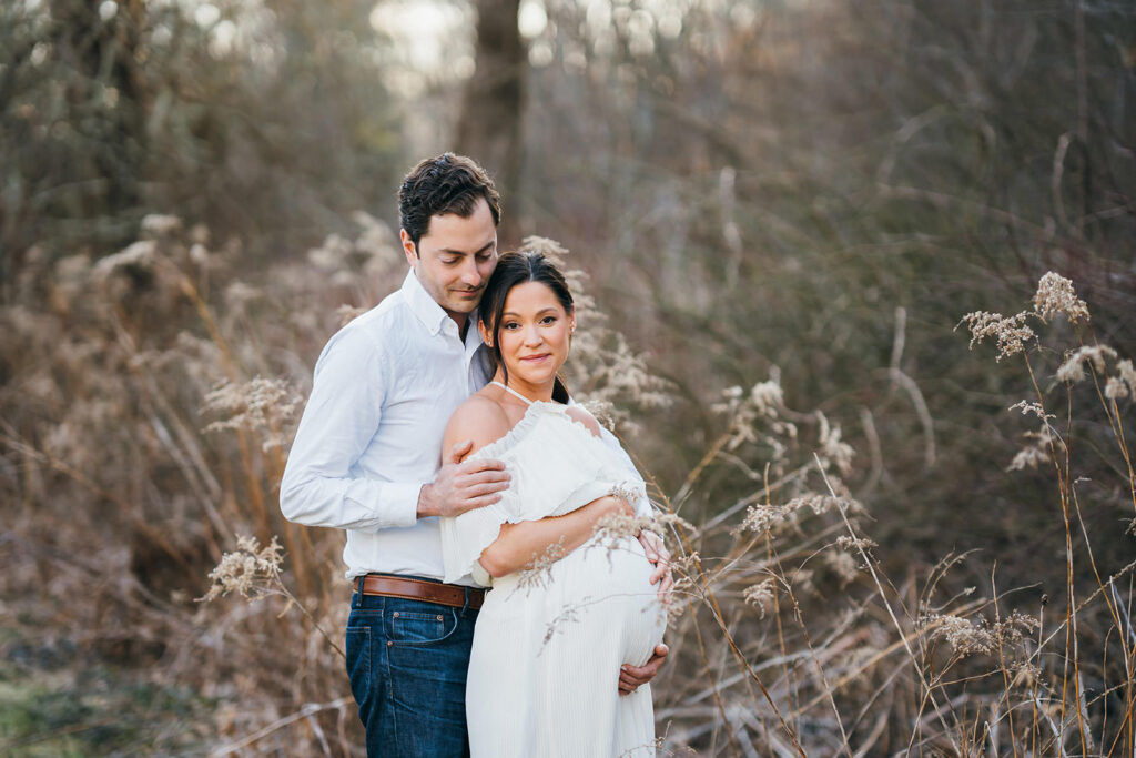 Boston offers so many beautiful options for maternity sessions, from coastal landscapes to quiet, tucked-away spots full of natural light. Some parents choose outdoor locations that feel open and peaceful, while others prefer the familiarity of their own home, even their backyard.